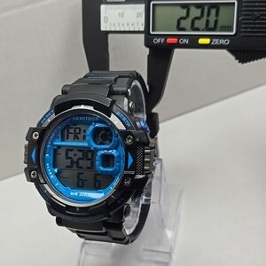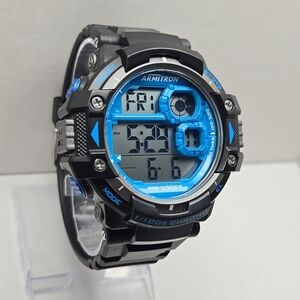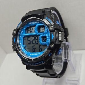 Armitron Pro Sport 408309 Digital Chronograph Watch New Battery Blue Black