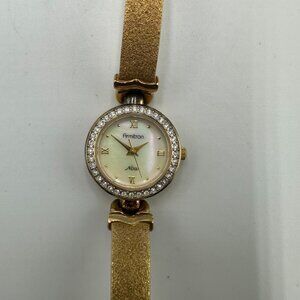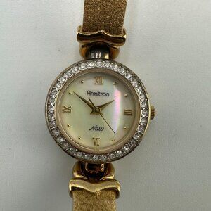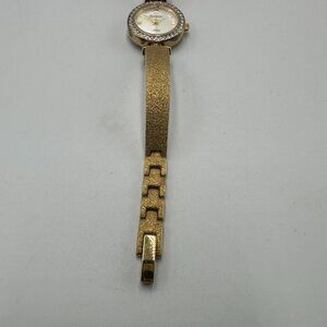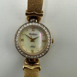 Armitron Watch Women Gold Tone Mother of Pearl Dial Textured Band New Battery 7"