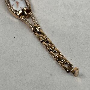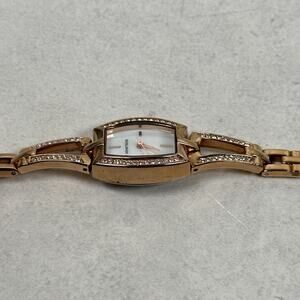 Condition: Good used condition. Light surface scratches and minor wear on case and band as visible in photos, but no missing stones or major defects. Crystal is clear with no major cracks or chips. Clasp and links are intact. Condition aligns with normal gentle use. Watch is working and has a brand new battery.