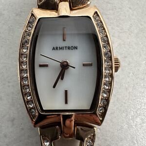 Armitron Watch Women's 18mm Rose Gold Tone Crystal Accent New Battery