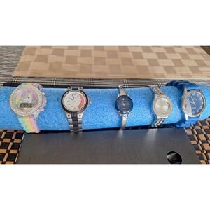 Lot of 5 watches. All work, all have brand new batteries! The Armitron is a real diamond. The blue with silicon blue band stops sometimes randomly, and the crystal is scratched. The others all work perfectly. The unicorn blinks random colors when the button is pushed and works perfectly. Overall, this lot is excellent! See pics for details of condition! Thanks for supporting our small business! We ship daily! We list on 7 different platforms, and our items usually sell pretty fast, so don't hesitate! Ask questions; we respond quickly! Our items are selected for condition and quality; we donate things that don't measure up to our local thrift store, so you get only what we deem as good or better! Thanks for looking at our stuff; we have more coming!