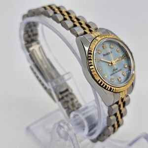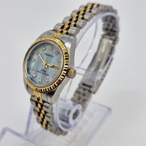 Armitron Women's Watch 24MM Blue Dial Day Date Two Tone Band 6.5" New Battery