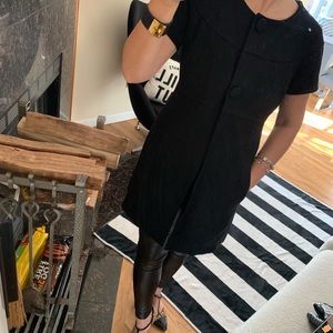 Flattering princess cut body + short sleeves (+ some long gloves). Since it’s lightweight wool coat you can wear with other coat over.
