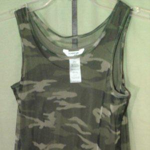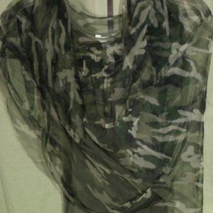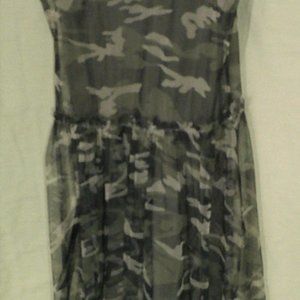 Army fatigue sheer cover dress with olive underlining - camouflage. Thin brown belt included for waist. Bebe girls