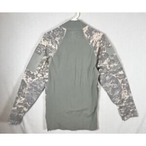 Army Combat Shirt Flame Resistant Size Medium Team Soldier Camo Tactical Long. Army Combat Shirt Flame Resistant Size Medium Team Soldier Camo Tactical Long Sleeve. Excellent condition. Fabric and seams well intact. Two arm zip compartments. Multiple features on arms. Please see photos for measurements. Shirt has stretch.