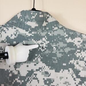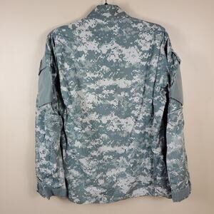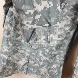 Size small. Green digital print. Long sleeve full zip coat. Light weight, multiple pockets on the front and sleeves, hook and loop fastener cuffs. Cotton Blend.