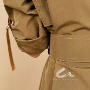 This dress is both bold and intimidating. It's a very sleek and structured silhouette. A perfect fall/winter dress.Structured silhouette midi dress with utilitarian vibes. Structured collar and shoulder details with adjustable sleeves and chest pockets. Comes with matching belt with adjustable closure.