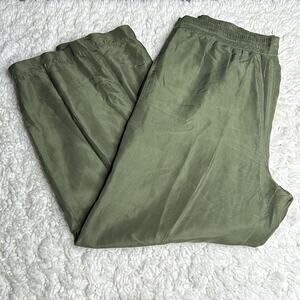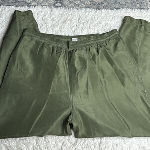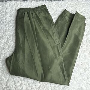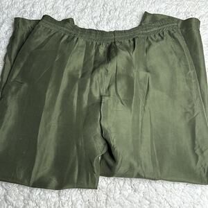 Army Green 100% Silk Pull On Pants Flowy Lightweight Drawstring Dress Pants 0125