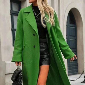 Army Green Casual Women's Notch Collar Dropped Shoulder Wool Coat