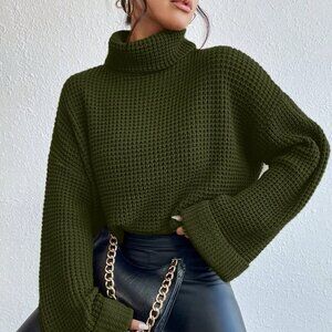Army Green Casual Women's Turtleneck Long Sleeve Sweater
