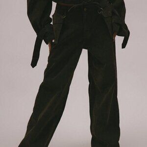 Army Green Casual Women's Velvet Denim Looped Hook On Pocket Detail Jeans