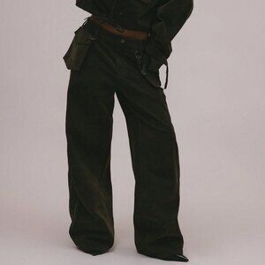 Army Green Casual Women's Velvet Denim Looped Hook On Pocket Detail Jeans