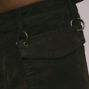 Army Green Casual Women's Velvet Denim Looped Hook On Pocket Detail Jeans