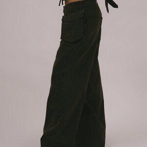 Army Green Casual Women's Velvet Denim Looped Hook On Pocket Detail Jeans
