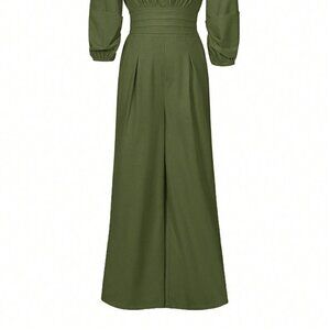 Army Green Elegant Women's Casual Solid Color Lantern Sleeve Jumpsuit