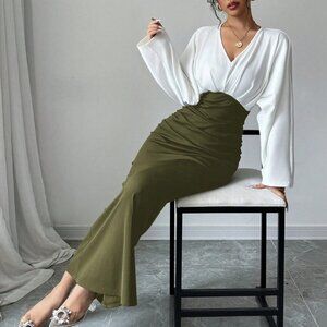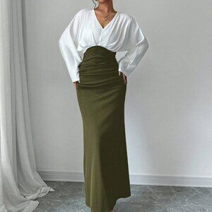 Army Green Elegant Women's V-Neck Long Sleeve Fitted Dress