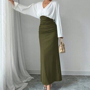Army Green Elegant Women's V-Neck Long Sleeve Fitted Dress