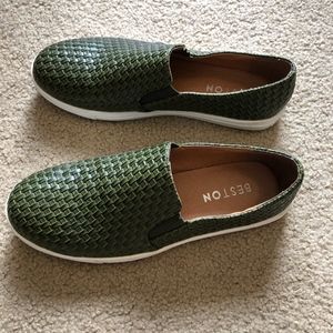 WORN ONCE - army green Beston flat sneakers. Size 9
