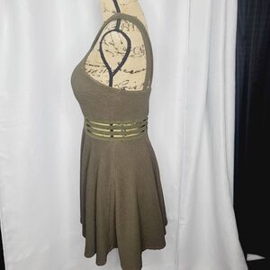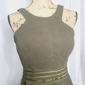 Army Green Illusion Waist Scuba Fit & Flare Dress