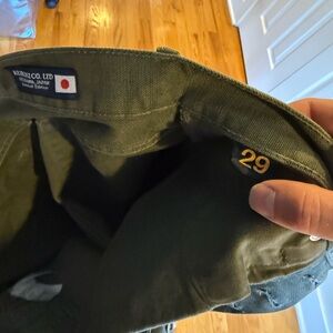 The real deal Japanese Denim army green. Hate to see them go just too small for me