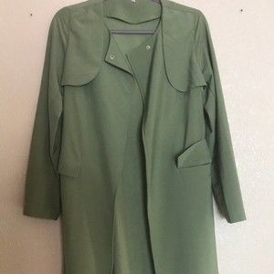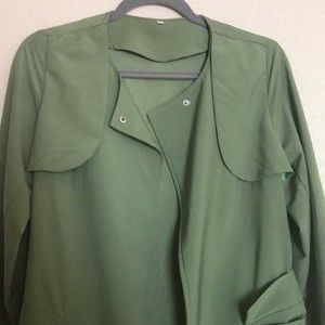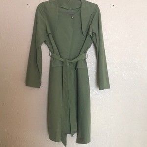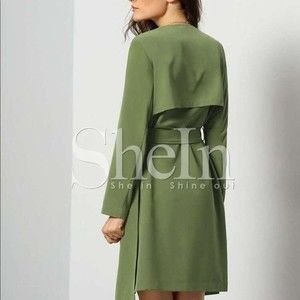 Army Green Long Sleeve Pockets Trench Coat