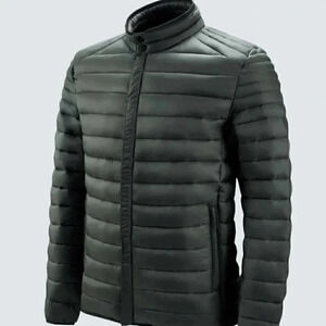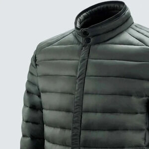 Army Green Casual Mens Zip Pocket Puffer Coat