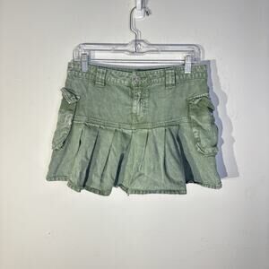 Army Green Pleated Cargo Mini Skirt Size M 100% Cotton