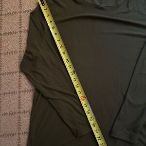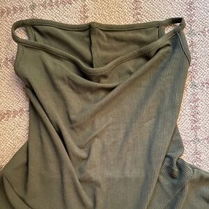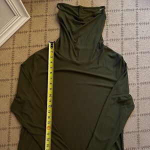 Army Green Long sleeve turtle neck T-shirt with ribbed material. Longer body length and super soft. Cowl Neck Converts to FACE MASK TOP! NWOT L Made in USA.