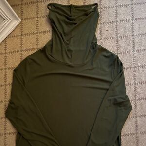 Army Green Turtle Neck long sleeved shirt with attached face mask NWOT L
