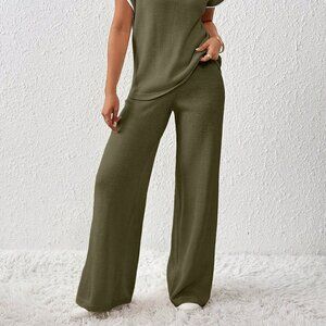 Army Green Women's Loose Knit Sweater & Drawstring Pants Set