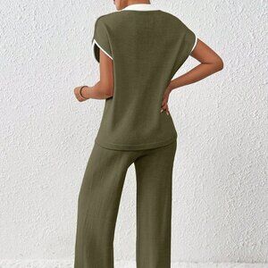 Army Green Women's Loose Knit Sweater & Drawstring Pants Set