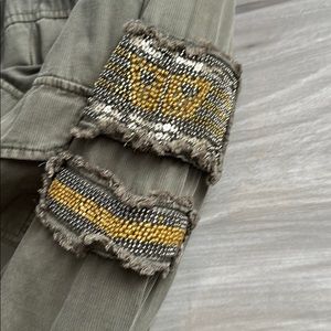 Green army jacket with details on the arm