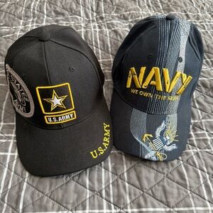 Here’s a couple of caps my brother in law purchased when he took his uncle on a Freedom Flight. Army and Navy both just tried on then stored. Honor Our Troops!