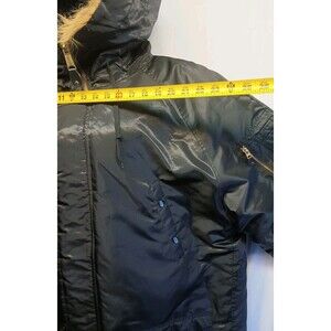 There is one tiny spot in picture #7, #8, & #9, otherwise flawless coat. The Army Navy Sateen Snow Parka in 2XL size is a heavy winter jacket perfect for snowboarding and skiing. It features a full zip closure, fur trim accents, and a classic fit. The polyester outer shell and insulation provide warmth weight of 500, while the satin fabric type gives it a luxurious feel. The mid-length parka design with a hooded style makes it a practical and stylish choice for winter travel and outdoor activities. Easy to care for with machine washable instructions, this black jacket from Army Navy is a durable and reliable choice for cold weather.