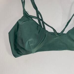 Women's Army Olive Military Green Strappy Bikini Swim Bathing Suit Top Size Medium