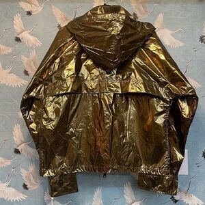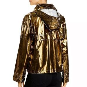 Army by Yves Salomon Metallic Gold Waterproof Windproof Jacket with Hood NWT
