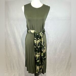 Super soft and stretchy shift dress. Camo wrap sash belt. Euc