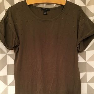 Army green, studded t shirt, Medium, lightly worn