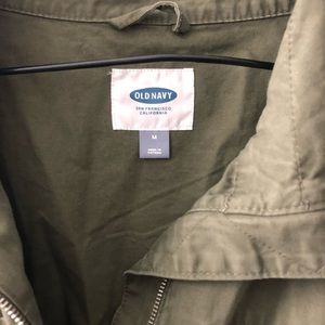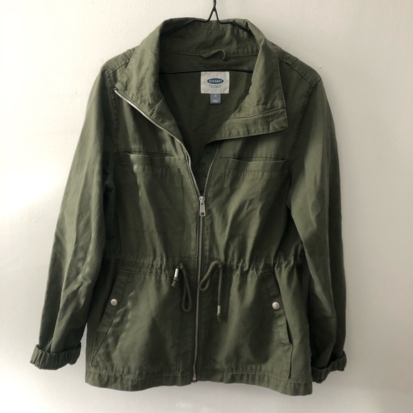 Super cute and flattering green army jacket. The ties in the middle cinch in the waist if you want!
