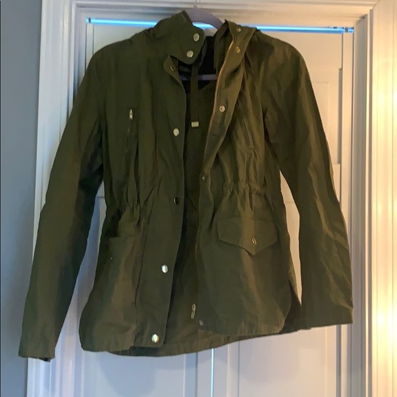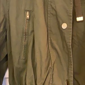 Army green zip up jacket with drawstrings and gold zippers. Only been worn once great for winter or light jacket for summer