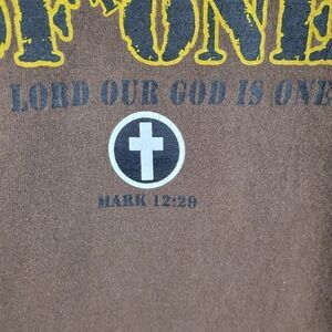 Simple brown cotton long sleeve t-shirt sharing Mark 12:29!