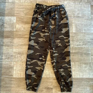 Item: army print joggers with elastic waistband and wrap belt. So flattering and comfortable material.