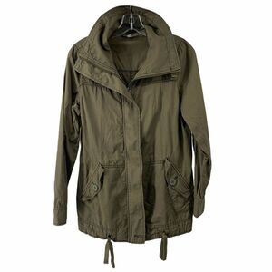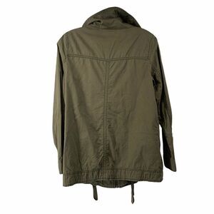 Army Green Womens Lightweight Full Zip Utility Jacket Rubbish Brand Mock Neck Collar Featuring Cinch Waist Drawstrings