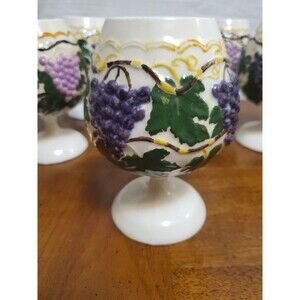 Arnels Ceramic Wine Goblet Glasses Set Of 6 Purple Grapes Green Vines Embossed
