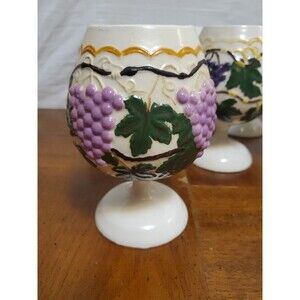 Arnels Ceramic Wine Goblet Glasses Set Of 6 Purple Grapes Green Vines Embossed . Condition is Used. Shipped with USPS Priority Mail.