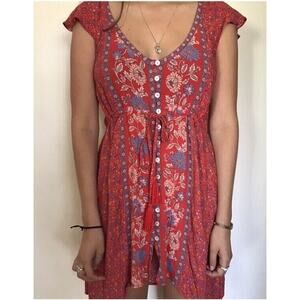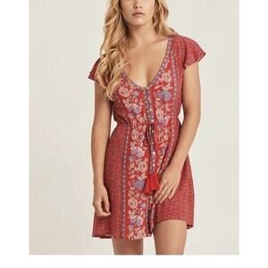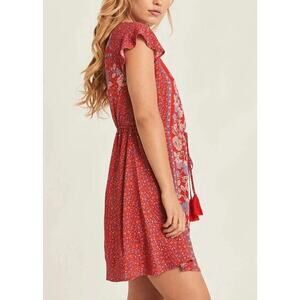 Arnhem Ophelia Floral Button Front Tassel Mini Dress Salsa Red AUS 8 US S 4