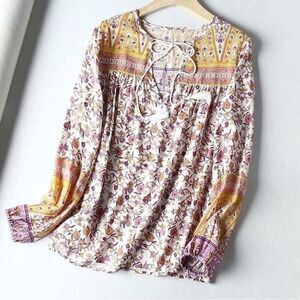 Chic floral blouse with a relaxed fit. Features a soft blush hue. Ideal for casual outings.