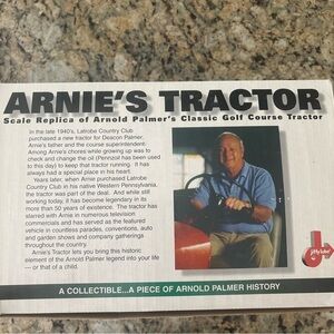 This is a fantastic Arnie's Golf Tractor Replica by Arnold Palmer, made to a 1:12 scale. The tractor is a Pennzoil model and features intricate details that make it a must-have for collectors. The brand is well-known for its quality and this model is no exception. The tractor is part of the Arnold Palmer Tractor series and is a great addition to any collection. The vehicle make is a doodlebug and it is classified as a tractor. This model is perfect for those who love contemporary manufactured toys and diecast vehicles.