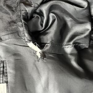 Great condition--I looked it over and I don't see any obvious issues. There is a tear in the lining at the armpits & a loose button--see photos as part of description.