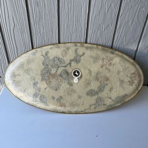 Lightweight yet durable, this piece embodies the charm of English mid-century kitchenware — ideal for use as a serving tray, bar cart accent, or fall charcuterie board. Its earthy colors and fruit pattern make it a perfect addition to autumn or Thanksgiving décor, while the sleek form keeps it timelessly stylish.